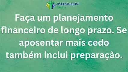 E atenção: faça um planejamento financeiro de longo prazo. Se aposentar mais cedo também inclui preparação. Assim, é importante manter uma reserva de emergência, como também investir em previdência complementar ou outras fontes de renda. Como também procurar desenvolver educação financeira ao longo da sua vida.