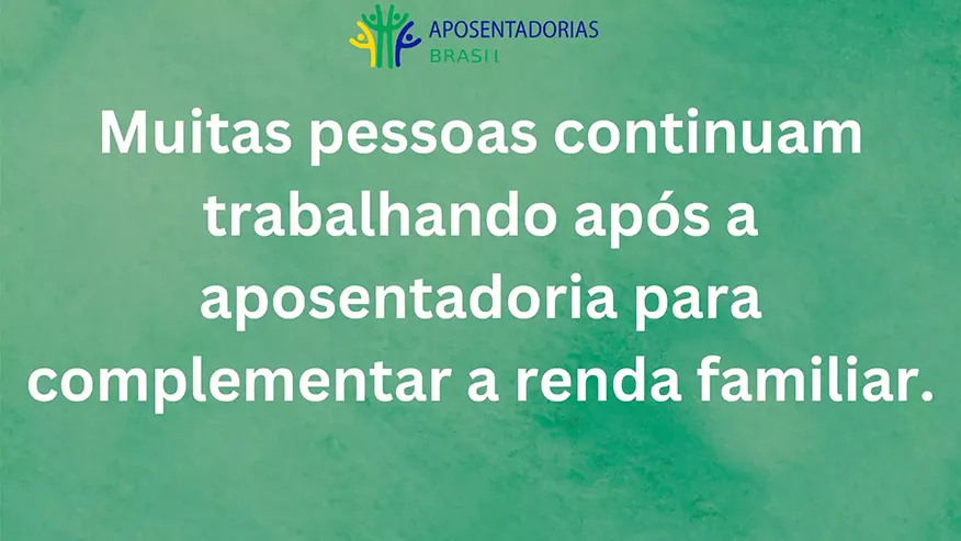 Hoje em dia, felizmente a qualidade de vida superior, os avanços científicos, permitiram um aumento considerável na expectativa de vida. Por esse motivo os aposentados estão vivendo mais e muitos com mais saúde. Portanto, continuar as atividades de trabalho após a aposentadoria se tornou possível com mais qualidade.